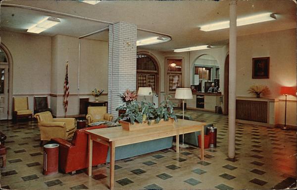 33861-B YOUNG YMCA MEN'S Restful Surroundings Main Lobby Bangor, Maine CHRISTIAN ASSOCIATION Pub. by Perry Tobacco & Candy Co., 261 State Street, Bangor, Maine BADE BY WEST #TACE. N. T. HERE