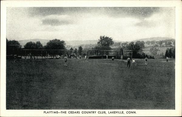 Front: PLAYTIME-THE CEDARS COUNTRY CLUB, LAKEVILLE, CONN. Back: EAGLE Eagle Post Card View Co., Inc., New York CAR VIC INC 2000 MADE IN US. A