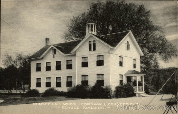 Front: RUMSEY HALL SCHOOL- CORNWALL, CONNECTICUT, SCHOOL BUILDING Back: Published for Edward Wells, Congers, N. Y. by The Collotype Co., Elizabeth, N.J. and N.Y.