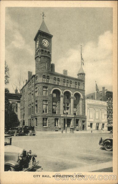 Front: CITY HALL, MIDDLETOWN, CONN. Back: Published by THE COLLOTYPF UC., Elizabeth, N.). and N.Y CARD 3-