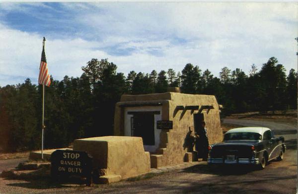 Ranger station at entrance to Bandelier National Monument. Near Santa Fe on the road to Los Alamos, New Mexico.