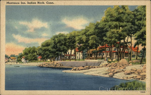 Front: Montasco Inn, Indian Neck, Conn. 70896 Back: MADE IN U, S. A 2- 68 *TICHNOR QUALITY VIEWS" REG. U.S. PAT, OFF. MADE ONLY BY TICHNOR BROS, INC., BOSTON, MASS. PUB. BY C. J. LOUNSBURY & SON, INDIAN NECK, CONN.