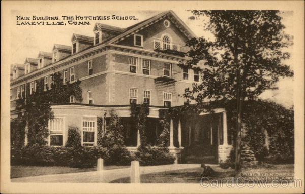 Front: MAIN BUILDING, THE HOTCHKISS SCHOOL, LAKEVILLE, CONN. # FF EB 20 PUBL BY DHORKES LAKEVILLE CON Back: EAGLE QUALITY---THE EAGLE POST CARD CO.. NEW YORK FOR ADDRESS ONLY