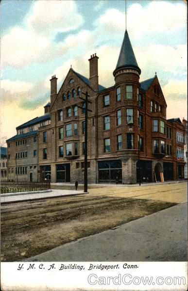 Front: PR EFF TEETHA Y. M. C. A. Building, Bridgeport. Conn. Back: Illustrated Postal Card Co. New-York-Leipzig. 13.-10 مار الا ۱۸۲ 68 DOMESTIC AND Two CENTS