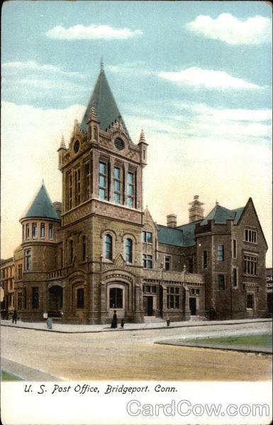 Front: FA 11 U.S. Post Office, Bridgeport. Conn. 21 ESI Back: 200 13.-9 Illustrated Postal Card Co. New-York-Leipzig. los DOMESTIC AND Two CENTS