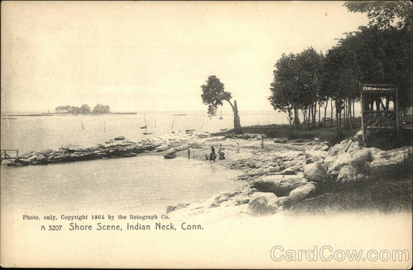 Front: Photo. only, Copyright 1905 by the Rotograph Co. A 3207 Shore Scene, Indian Neck, Conn. 15 Back: The Rotograph Co., N. Y., City. (Germany.) Two cents