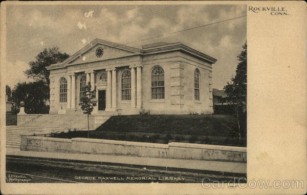 Front: A.R.NEWELL, Photographer THE GEORGE MAXI LIBRARY GEORGE MAXWELL MEMORIAL LIBRARY ROCKVILLE. Back: 2₁ 89 THE ALBERTYFE CO.! BROOKLYN, N.Y.