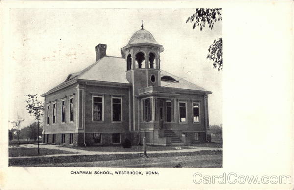 Front: CHAPMAN SCHOOL, WESTBROOK, CONN. Back: = d. DO CONN 500 CONFORMS TO THE REQUIREMENTS OF SECTION 418 POSTAL LAWS AND REGULATIONS. POSTAL HERE.
