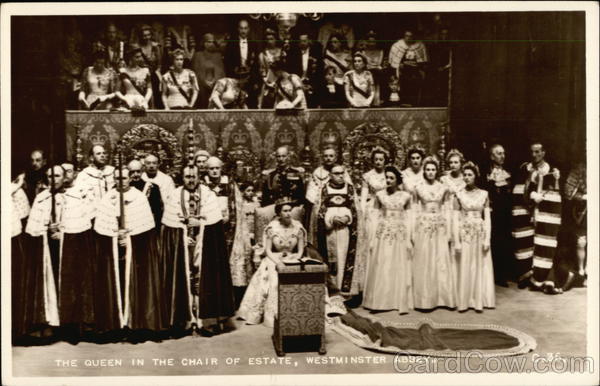 THE QUEEN IN THE CHAIR OF ESTATE, WESTMINSTER ABBEY.