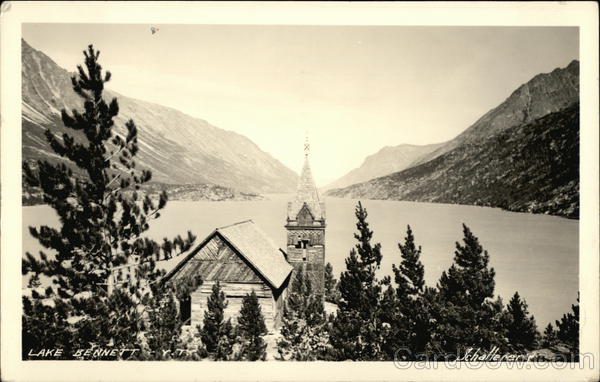 Front: LAKE BENNETT Schallerer Back: POSTARD JUNE you! 1958 ALASKA PEA Haring fine trip. Weather is cool 5255 but pleasent. Mamie U.S. POSTAGE 34 Mr & Mrs. Chav & Lamb 5255 Sky Frail Bow Mar! Littlelon Colo