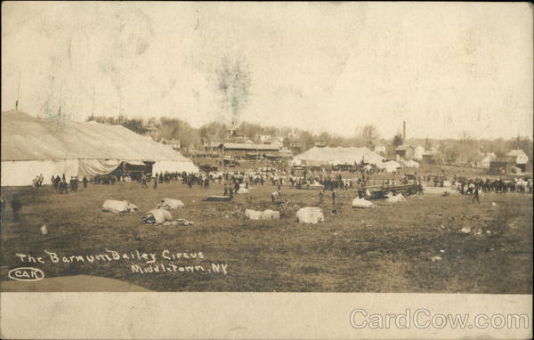 Front: The Barnum Bailey Circus CAK Middletown, NY 0 Back: Ou MAY 4 19 Lafagria 905! WV L 140 awe, WAD 1. H.V. Webster, Ossing, N. 4 ||!!!!