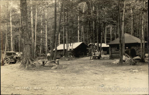 Front: AUTO PARKING 21 COTTAGES AND AUTO PARK RAINBOW FALLS Back: Indian Res. Wis. di St 1932 Menomonee