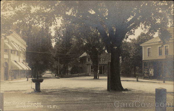 Front: CANTON 3MILES FOXBORO 6MILES POST OFFICE SQUARE SHARON, MASS 0251. WARNING TURUN AT A GREATER BRYANT. SELECTIMEN Back: ”photocard” Norwood, Mass. Rhodes Bros. Publishers, This space for address only