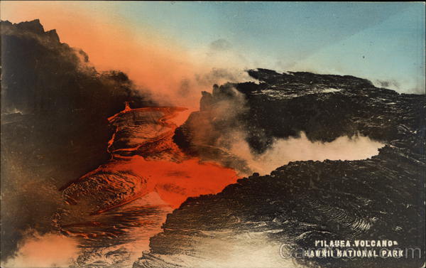 Front: KILAUEA VOLCANON HAWAII NATIONAL PARK Back: Volcanoes. FPC HAWAII Hawallan islands 33600 FEB 4 1947 ATTLA Jost von 2 STAMP = Ma JERARY ORIA 0