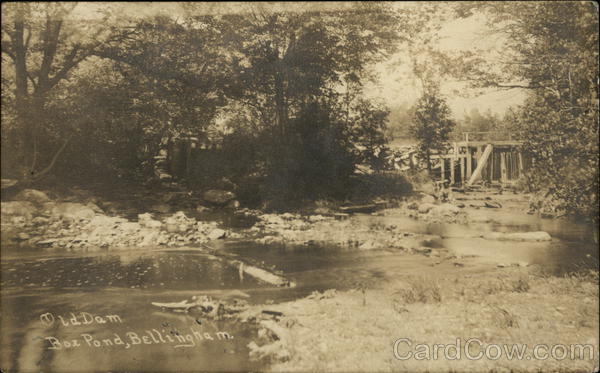 Front: Old Dam NA Box Pond, Bellingham. ** aty n Back: 1600 I did not recurran answer to my last letter yebt hote you are not sich of writing me Answey 2000 Harland Elook ELLING 1CENTE nuri MASS Miss Pauline Botsford, South West, P.A.
