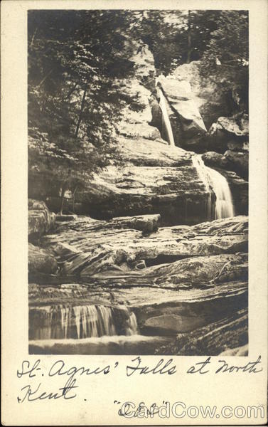 Front: THAY St. Agnes' Falls at north Kent. "282" Back: Same Post CardSEP ress Stay Dept. KFNT 4- 1905 Baidge port ww NERIKS 190 2 UNITED STATES OF Miss Ella Brown Ja. Warner Brothers. Ja 1705 FRANKLIN 1790 Connecticut