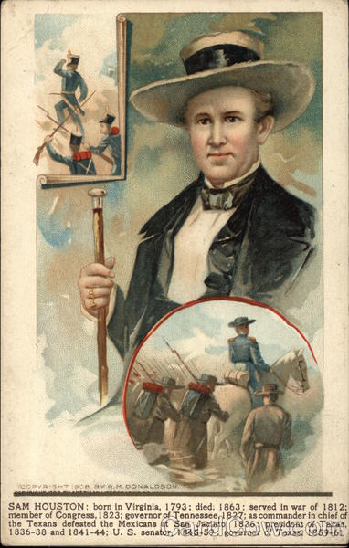 SAM HOUSTON: born in Virginia, 1793; died; 1863; served in war of 1812;
