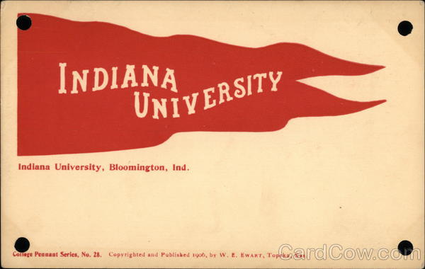 INDIANA UNIVERSITY Indiana University, Bloomington, Ind. College Pennant Series, No. 28. Copyrighted and Published 1906, by W. E. EWART, Topeka, Kas.