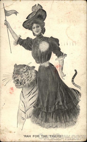 Front: SEASON 1907 'RAH FOR THE TIGERS! ALL RIGHTS RESERVED. J. R. GEORGE, DETROIT Back: Ws=6= ah! Octs-07. OCT 6 C 930PM 1901 1960 Mr. Eugene Bennett. Hartford Michigan M.K. SERIES 1902 UNITED STATES OF TEM 1706 FRANKAAN 1790 Tot