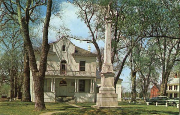 Heathsville, Va., was built in 1851 with wing at right added in 1965. Memorial on Green is to soldiers form the county who served in the War between the States and World War I.