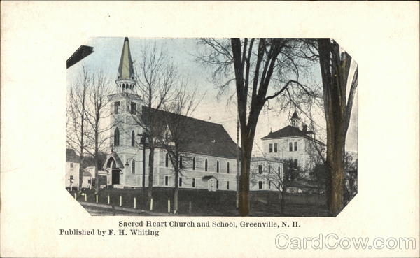 Front: |||| 11 Published by F. H. Whiting 11 Sacred Heart Church and School, Greenville, N. H. Back: This Space is Exclusively for the Address Two Cents