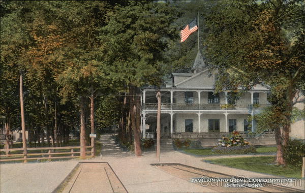 Front: UDIONAUT UN DIL MOVI PAVILION AND GROVE LAKE COMPOUNCE, BRISTOL CONN. Back: W-46214 PHOTOCHROM 8. ROST THIS SPACE FOR ADDRESS ONLY.