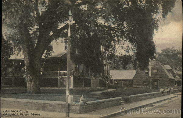 Front: JAMAICA CLUB JAMAICA PLAIN MASS. Filat day H Back: Pub. by Boston Post-Card Co., 12 Pearl St. HAND COLORED. No 754 1.25 TWO CENTS