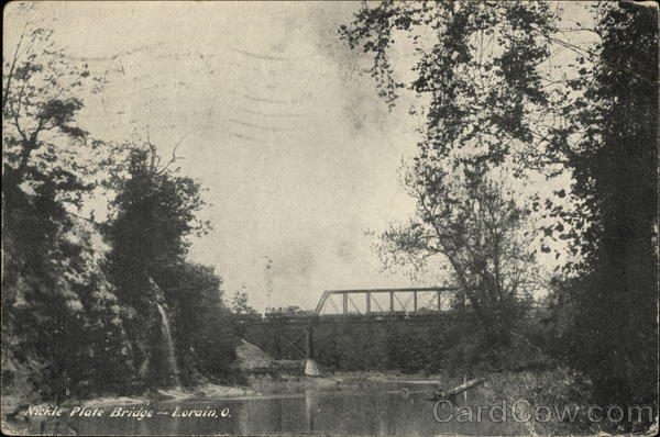 Front: PO Nickle Plate Bridge - Lorain, O. N Back: AUG 24 6-30P 3 POSTCARD کی SERIES 190 UNITED STA 1706 FRANKLIN 1790 CAME اشقانه و اند 8/23 Johna Pam hovein Master John Naffair good time Aro