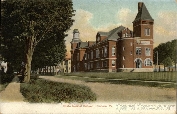Front: STORE IN State Normal School, Edinboro, Pa. Back: Copyrighted by L. V. Kupper. LEIPZIG BERLIN DRESDEN LITHO-CHROME TRADE-MARK ORDER No 10449 400 United States and Island Possessions, Cuba, Canada and For all other Countries 87932
