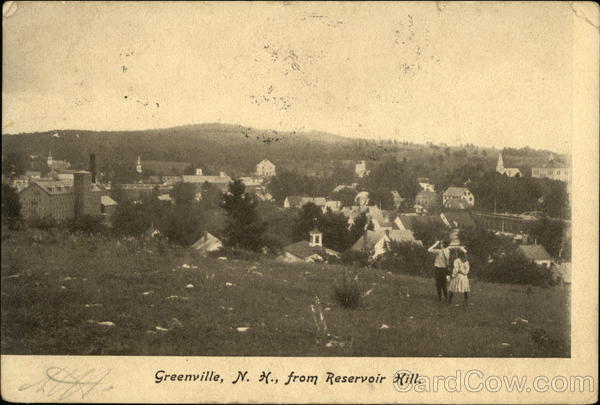 Front: 00 100000000 boono imm VU Greenville, N. ., from Reservoir Hill. Back: * POST-CARD 4- C. B. WEBSTER & CO., BOSTON for address *MAM Frank Bollor. Hoffell Spraye ec 072002 مسابیت کے Bill CENT