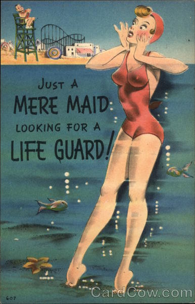 Front: JUST A MERE MAID: LOOKING FOR A LIFE GUARD! 607 Back: 30 WECOURSU سر الالبانيا Econ SOLITAN 7453