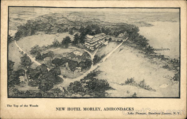 Front: The Top of the Woods NEW HOTEL MORLEY, ADIRONDACKS Lake Pleasant, Hamilton County, N. Y. Back: Ic Stamp