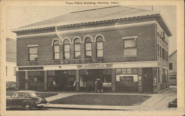Front: Town Office Building, Medway, Mass. NICHARDSONS MEDWAY NEWS DEAN LINRAR Back: FAIRBANKS COMPANY * 111 SUMMER STREET, BOSTON, MASS. WF5X