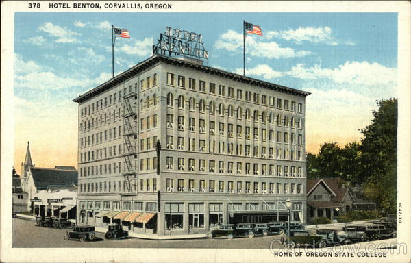 Front: 378 HOTEL BENTON, CORVALLIS, OREGON HOT ராாாாாராயா lil HOME OF OREGON STATE COLLEGE 1042-30 100 Back: 200 POST A CARD PORTLAND ORE Message May Be WRITTEN ON THIS SIDE WESLEY ANDREWS CO., PORTLAND, ORE.. T. CHICO