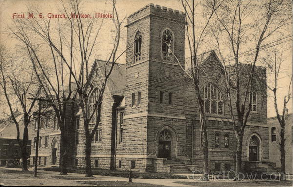 Front: First M. E. Church, Maltoon,, Illinois JISTI 11 Back: She Alice a fine time! ng In Aur haver A 13 296 JUN 16 -30P 09 LLI 5- R.R. #1 Mrs G. Wi Flick Golden Exty Mr.