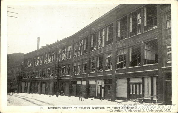 Front: 30 HEAD BA 10. SM 11 BUSINESS STREET OF HALIFAX WRECKED BY GREAT EXPLOSION. --Copyright Underwood & Underwood, N.Y. Back: Novelty Mfg. & Art Co., Limited, Montreal 1.25 THE ADDRESS TO BE WRITTEN ON THIS SIDE