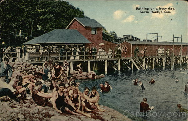 Front: SLA ME ANG PAVILION SPERS BATHING Bathing on a busy day, Savin Rock, Conn. AWI F Back: Pub. by Danziger & Berman, New Haven, Conn FOR CORRESPONDE NCE ONLY ORIGINALITY QUALITY DEB GARD HERE
