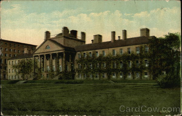 Front: 31001 100 LLA 77111 00300 10 Boston, Mace. Massachusetts Geberal Hospital Main Building 215724 Back: The Leighton & Valentine Co., N.Y. City. THROUGHOUT TRADE MARK. QUALITY FAMOUS атном зн. CARD