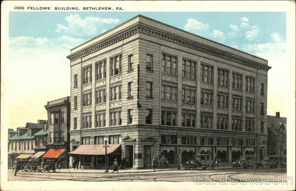 Front: ODD FELLOWS' BUILDING, BETHLEHEM, PA. 18 11 10 11 Back: PUB. BY LEHIGH VARIETY CO., SO. BETHLEHEM, PA, of 12 cued Ino byg 9+2+1 Damaged feresti po bun лид MEQ. OP pu to 663 EICHNOR VIEWS MASS 126790 DOST уо уд y form 8 8 4- z 7 000 1907 Gl