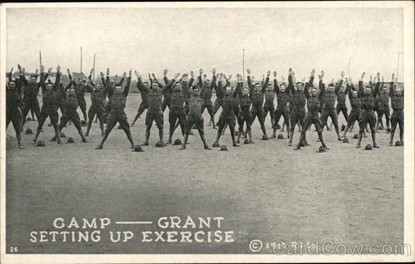 Front: 26 CAMP GRANT SETTING UP EXERCISE 1917 R.I.Co Back: PUBLISHED BY THE PHOTO-POST CARD CO., ROCKFORD, ILL. mofada HERE