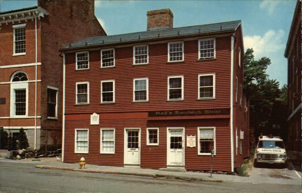 The London Coffee House, located at 15 Central Street and now occupied by Red's Sandwich Shop, was the gathering place of the Patriots before the American Revolution. Heated discussions took place adjacent to the huge fireplace in regard to the oppressive British taxes. Tourists and townspeople enjoy excellent food at moderate price in this historic building. The house was given to the Salem Fraternity, the oldest Boy's Club in America, in 1903 by Caroline Emmerton, the mother of tourism in Salem Dexter Press, Inc. |