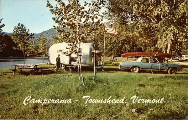 CAMPERAMA NEARBY SOUTHERN VERMONT Open all year * Heated Pool * Directly on scenic West River * 250 Shaded sites w/Hookups * On site camper/trailer rentals * Scenic beauty * Perfect vacation campground * near major ski areas * Seasonal sites * Brochure Woodall **** Rated. Tel. 802-365-4451 15 Miles north of Brattleboro on Rt. 30, Townshend, Vt. 05353 |