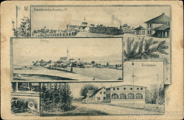 Front: 20 Eisenbahnstation Neunbury, v. W. KBSB Cerv Gg. Dorrer Franz Strohmayer, keunburg feat 664 Penting. 1111 Erzhäuser. W Back: POSTKARTE. میں