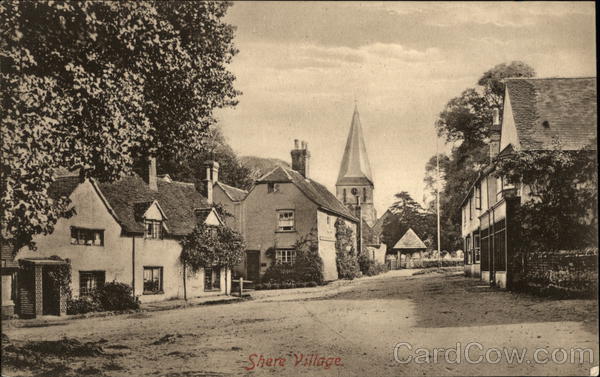 Front: Shere Village 19 Back: F. Frith & Co. Ltd. Reigate. No. 50267 FRITH'S SERIES This Space may be used for Communication. Che Nddress only to be written here Affix Half penny Stamp.