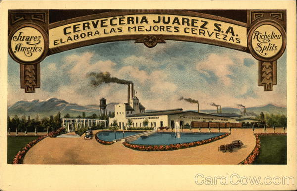 Front: Juarez America CERVECERIA JUAREZ S.A. Richelieu ELABORA LAS MEJORES CERVEZAS Splits ASSA CIA. CERVECERA DE LIUDAD VIVACER parwy JUPA Back: Tarjeta Postal