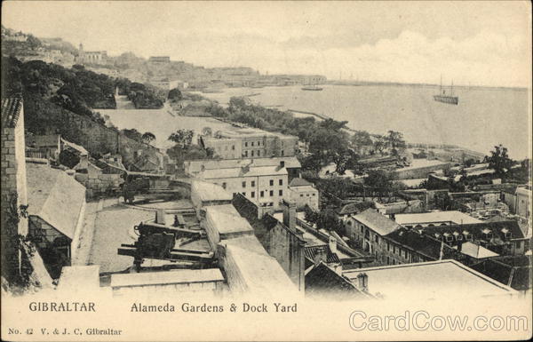Front: GIBRALTAR No. 42 V. & J. C. Gibraltar *I* Alameda Gardens & Dock Yard Back: GIBRALTAR THE ADDRESS ONLY TO BE WRITTEN ON THIS SIDE.