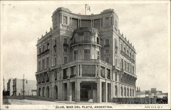 Front: 19 CLUB, MAR DEL PLATA, ARGENTINA. 100 MONO FOTO, S.F.A. DE A. Back: MITCHELL'S, 580 CANGALLO 578, BUENOS AIRES. Argenti TARJETA POSTA Mar del Plate) UNION POSTAL UNIVERSAL. DISCARDED ATTLEBFROMBLIC ATTLEBORO PUBLIC LIBRARY
