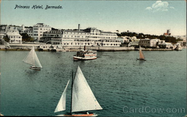 Front: Princess Hotel, Bermuda. (r WOLLE, H MNE 14 KENNEN ** CADA INN FORRIFERIE RES BETE KWET Back: Published by The Yankee Store and the Bermuda Drug Co., Bermuda. 71. A Printed iu Saxony 10