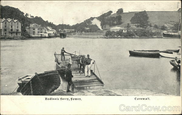 Front: 10 Bodinnic ferry, Fowey, Cornwall. Back: W rite Here for Inland Post only ..Post Card... (Wharton & Co's Series) Half penny @o ADDRESS TO BE WRITTEN ON THIS SIDE