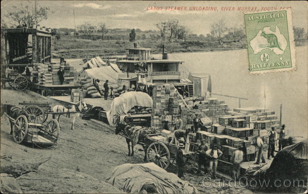 CARGO STEAMER UNLOADING, RIVER MURRAY, SOUTH